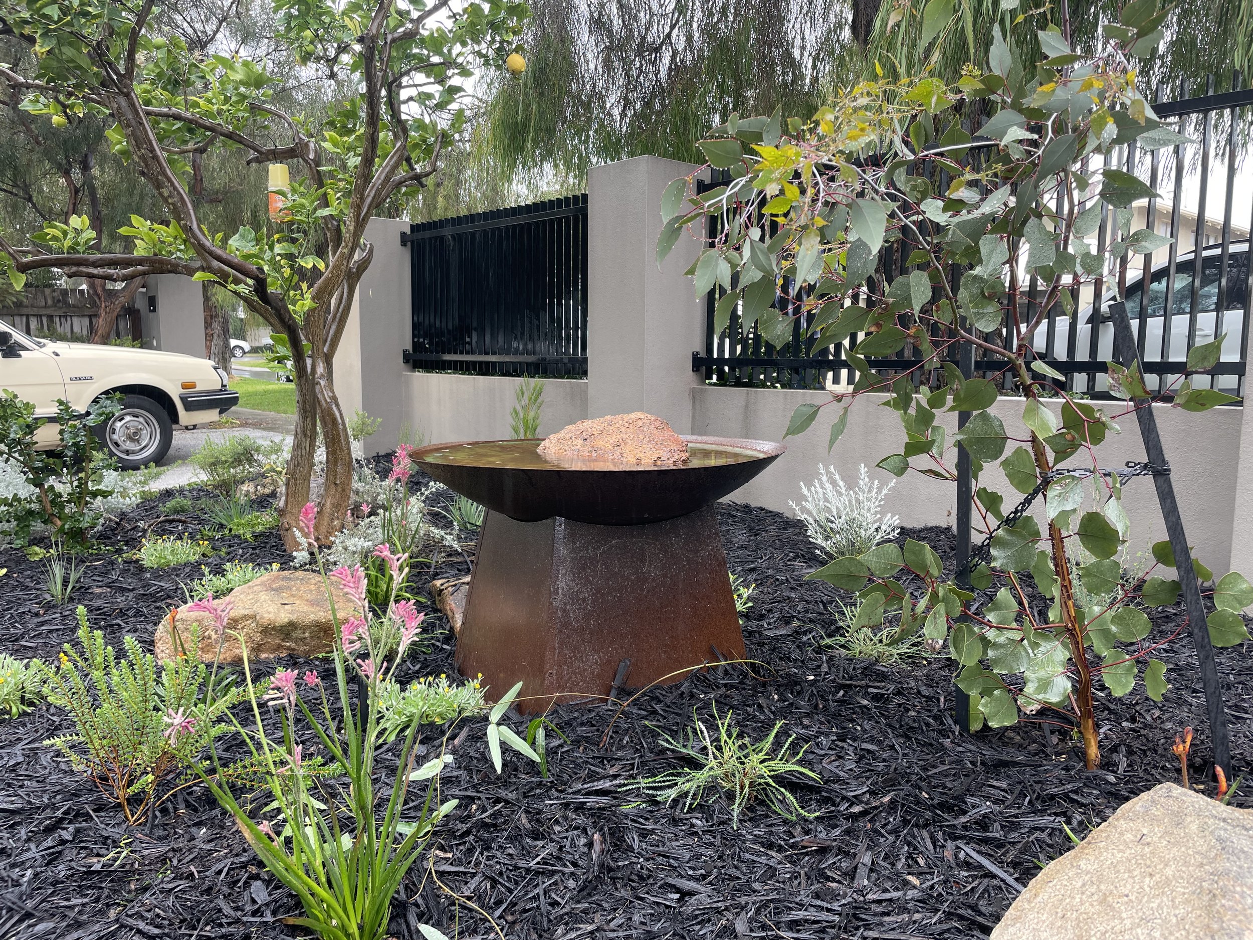 “Make it flower completely transformed my garden from a tired, old rose garden into a native garden that is full of colour and life again. My new garden means a lot and is very special to me, I enjoy being out in the garden a lot more now and always love spotting a new flower I haven’t seen yet. The bird bath also has many visitors and it has been lovely getting to know my local birds. Mel & Matt suggested finishing the garden with a Willy Wagtail piece of art, which meant a lot to me and it definitely makes the space feel complete. I am always getting compliments from my neighbours, they all love it! I would highly recommend Mel & Matt from Make It Flower, they are lovely to work with and their knowledge on native plants is extraordinary!